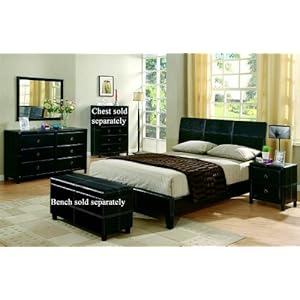 4pc Queen Size Bedroom Set in Black Bycast Like Vinyl